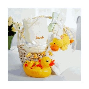 Baby Bath Gift Baskets![]() This Ducky New Born Baby Gift Basket from Pretty Baby Gifts is so cute with it's rubber ducky bathtime theme. It comes with rubber duckies, a hooded towel, washcloths, baby blanket, and a soft toy. This basket can even come with the baby's name embroidered to personalize it!